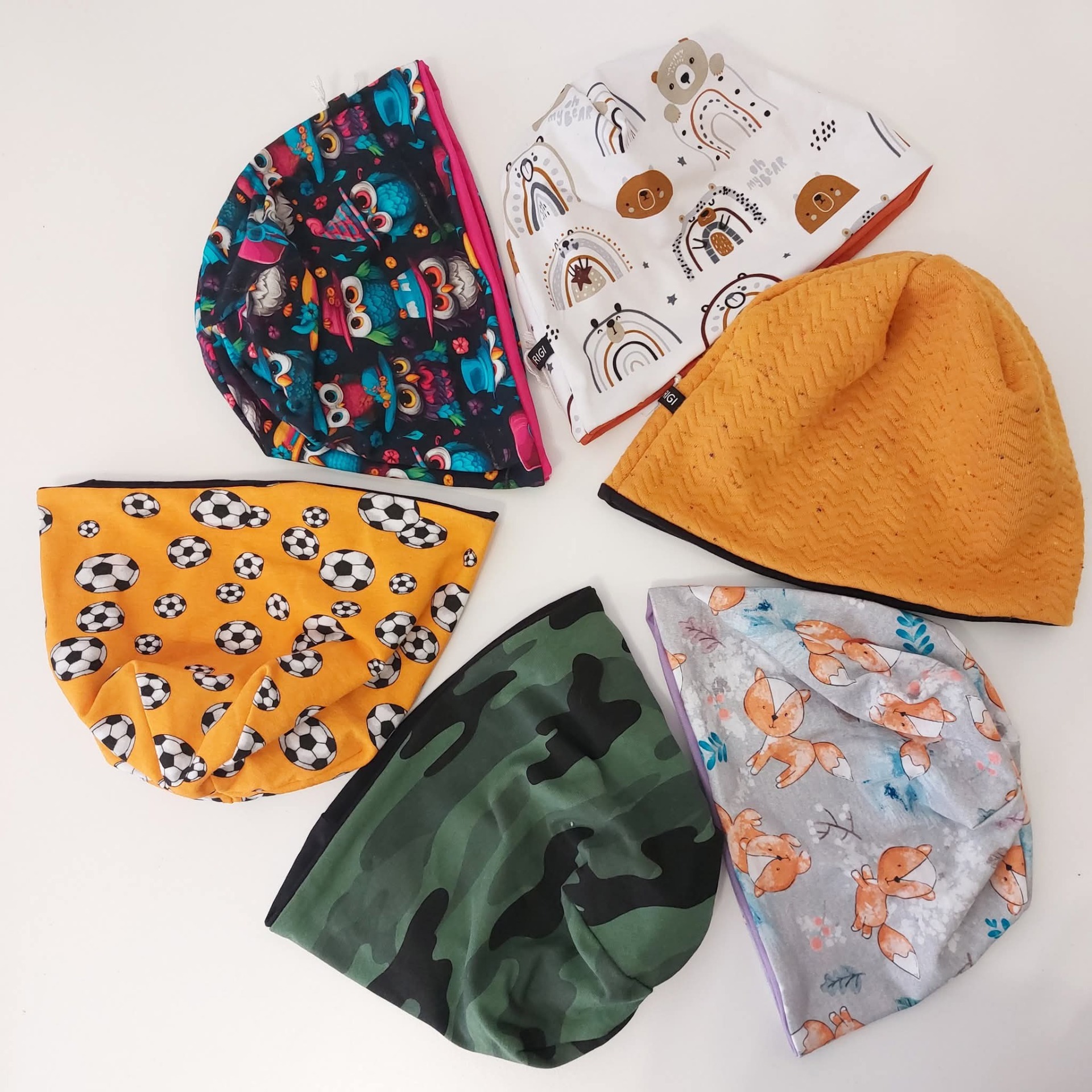Čepice různé barvy a velikosti.Možnost vymyslet čepici na přání. Stačí při objednávce napsat přání a na všem se domluvíme.